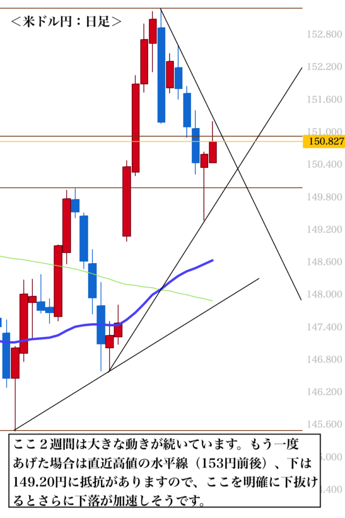 激しい動きの時は… 未分類 2025.10.20 おはようございます。ハヤテです。 現在の相場を見てみましょう。 米ドル円の日足です。 日経平均も大きく動いていますし、よほどの確信と根拠がない限りはエントリーしないのも手です。 「あの時、ポジション持っていればよかったー。」と言っていたらキリがないですし。 私は直近高値、安値、トレンドライン、ボリンジャーなどで基本的に分析しています。 今日の重要経済指標です。 今日は少なくて 12:50🇯🇵高田日銀審議委員の会見 となっています。 それでは、良い1週間にしましょう!😊